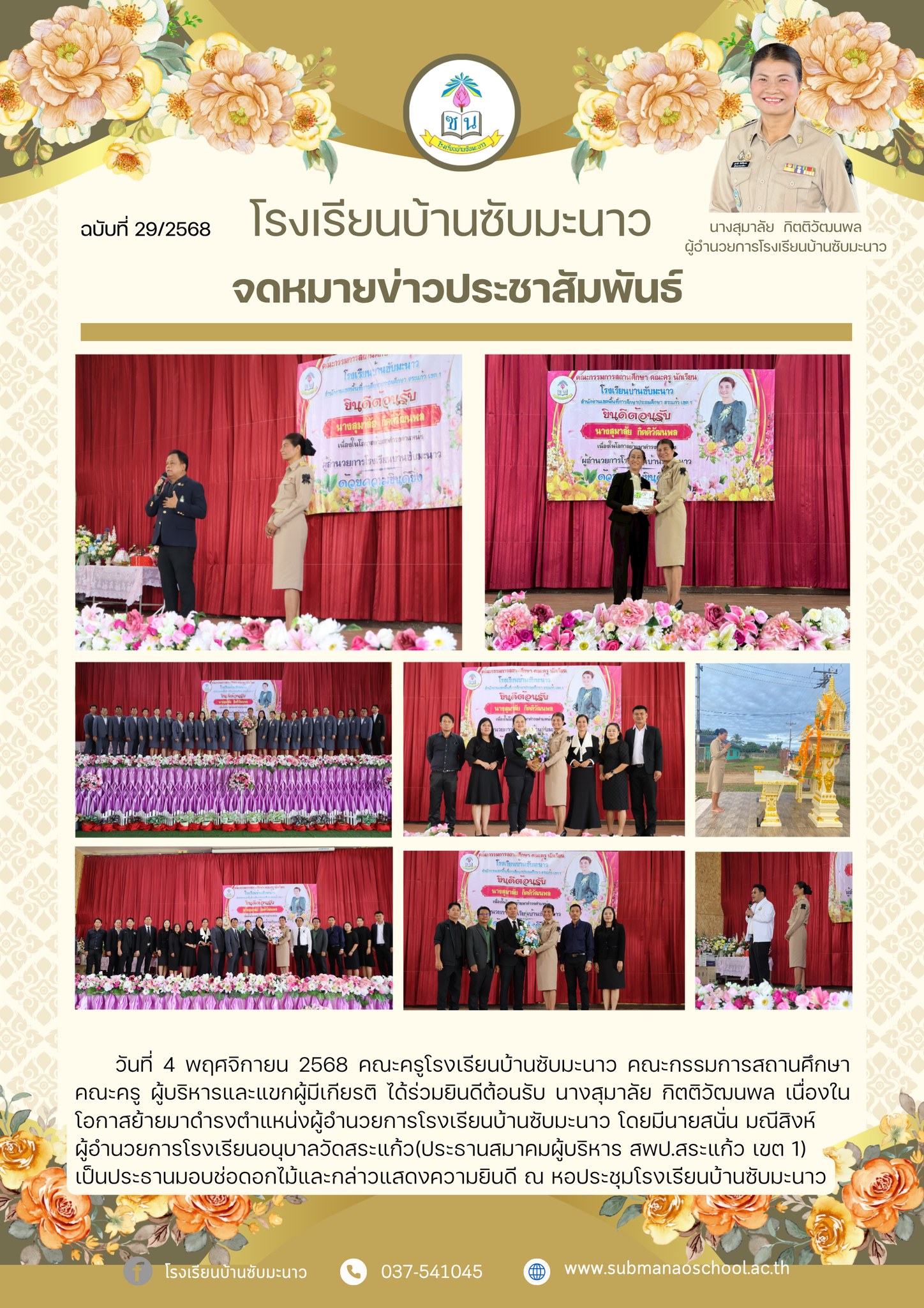 ยินดีต้อนรับ นางสุมาลัย กิตติวัฒนพล ย้ายมาดำรงตำแหน่งผู้อำนวยการโรงเรียนบ้านซับมะนาว 06/11/256806/11/2025 admin โรงเรียนบ้านซับมะนาว รูปภาพเพิ่มเติมคลิก Facebook iconFacebookTwitter iconTwitterLINE iconLine admin โรงเรียนบ้านซับมะนาว 203 ม.7 ต.หนองหว้า อ.เขาฉกรรจ์ จ.สระแก้ว 27000